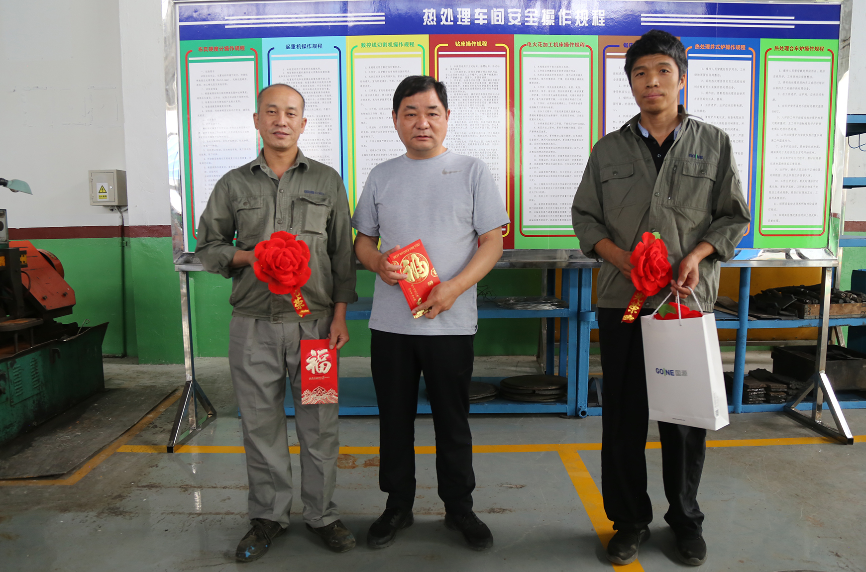 董事長劉運智先生為熱處理車間榮獲首創(chuàng)生產現場“標桿車間”稱號、機加車間北區(qū)榮獲首創(chuàng)生產現場“達標區(qū)域”榮譽稱號,頒發(fā)了榮譽牌匾;生產運營中心副總經理趙紹璞同志陪同董事長為現場標桿員工發(fā)放獎金、并佩戴光榮花。